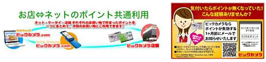 ビックカメラは、店舗で使える「ビックポイント」と、ネットショップ「ビックカメラ.com」で使用できる「ビックネットポイント」の共通利用手続きを、12月19日に簡便化した。