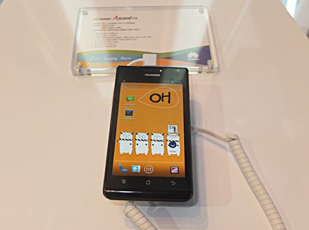 ファーウェイは、今回、スマートフォンやルータなどの通信機器に絞って製品を展示。「CES 2012」開幕前日の記者会見で発表した世界最薄、厚さ6.68mmのAndroid 4.0を搭載したスマートフォン「Ascend P1 S」をメインに展示していた。
