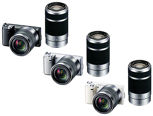 ダブルズームレンズキットには、標準ズームレンズ「E 18-55mm F3.5-5.6 OSS」と、光学式手ブレ補正機能を内蔵した望遠ズームレンズ「E 55-210mm F4.5-6.3 OSS」の2本のレンズが付属する。カラーはブラック、シルバー、ホワイトの3色。ボディ、ズームレンズキット、ダブルレンズキットは販売中。