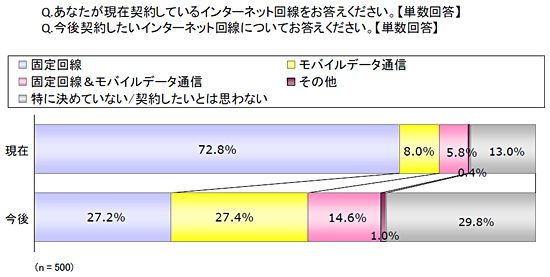 「新生活のインターネットに関する意識調査」、モバイルデータ通信の契約意向が固定回線を上回る