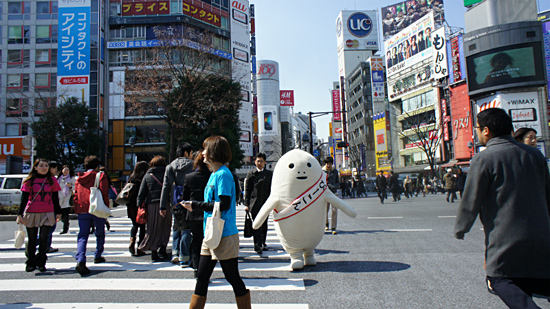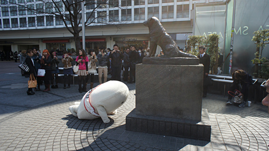 忠犬ハチ公前へ向かう「ぴーこん」(3月15日12時頃)
