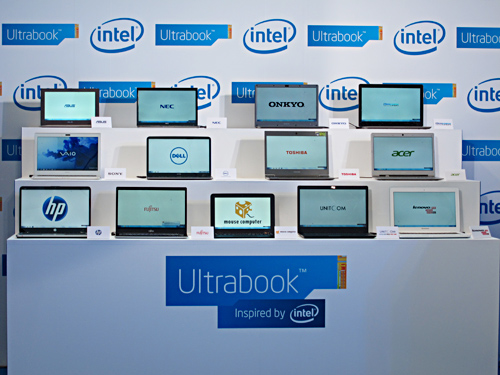 参考出品を含むメーカー13社の最新ウルトラブックが並んだ