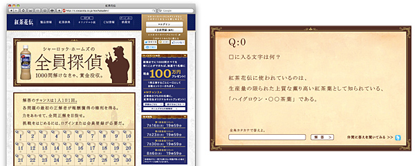 日本コカ・コーラは、7月9日20時~8月6日19時59分59秒に特設サイト「紅茶花伝 シャーロック・ホームズの全員探偵 1000問解けなきゃ、賞金没収」で、みんなで力を合わせて1000問すべての答えを埋めるキャンペーンを実施する。