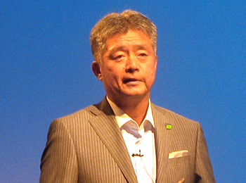 アプライアンス・ウェルネス マーケティング本部の中島幸男本部長は、スマートフォンと連携する生活家電やヘルスケア機器の魅力を紹介。フラッグシップモデルに先行して搭載している機能だが、「今後は中級機以上のモデルにスマートフォン連携を広げ、2014年中に現在の倍の製品カテゴリにして、全体で260万台の普及を目指す」と説明した。