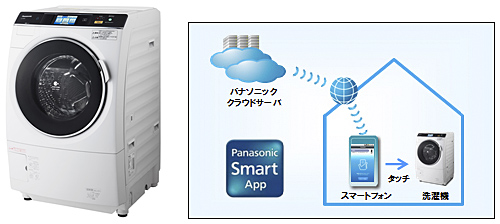「エコナビ」機能を強化した冷蔵庫は、冷蔵庫の消費電力状況や開閉回数を記録。洗濯乾燥機では、洗濯コース・予約の設定がスマートフォンから操作できるほか、洗濯・柔軟剤を設定しておくとアプリを通してクラウドサービスからの情報と受け取ることで、最適な量の洗剤で洗うことができる。