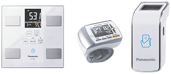 左から、体組成計「EW-FA43」、活動計「EW-NK63」、血圧計「EW-BW53」
