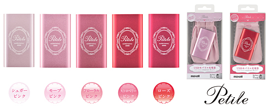 日立マクセルは、女性ユーザーをターゲットにした薄くて軽くてコンパクトなスマートフォン対応モバイル充電器「Petile(プティール) MPC-R1000」シリーズを、12月20日に発売した。カラーは、シュガーピンク、モーブピンク、フローラルピンク、ストロベリーピンク、ローズピンクの5色。価格はオープンで、実勢価格は2000円前後。
