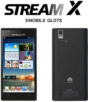 イー・アクセスは、LTE(高速データ通信)サービス「EMOBILE LTE」に対応した初のAndroid搭載スマートフォン「STREAM X(GL07S)」を、3月7日に発売する。