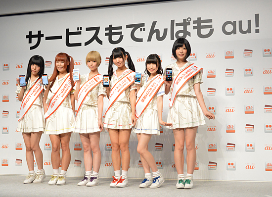 イベント後半に登場したのは、秋葉原を中心に活動するアイドルグループ、でんぱ組.inc。auのサービスの宣伝部長に任命された6人は、「auスマートパス」「au WALLET」「ビデオパス」の3サービスを、それぞれ担当に分かれてアピールしていく。