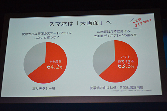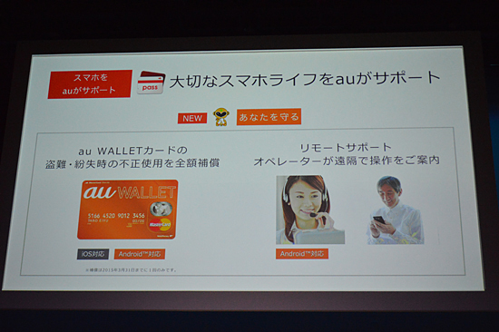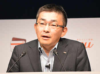イベント冒頭で、高橋誠専務は「『毎日にWOWがあるスマホへ』のスローガンの下、端末だけでなく、サービスの拡充を進めている」と現在の事業戦略を説明。「6月に開始した『au WALLET』の登録数は、500万人を突破した。ポイントアップ店舗数の拡大や、WALLETポイントの用途拡大、『auスマートパス』との連携によって、その利用価値をさらに高めていきたい」と「au WALLET」の展開を語った。