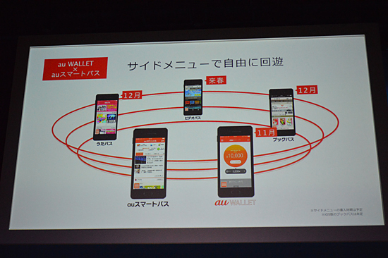 KDDIは、8月28日、電子マネーサービス「au WALLET」とauスマートフォン向けサービス「auスマートパス」の連携や、映像サービス「ビデオパス」のコンテンツ拡充など、今年秋以降のサービス展開を発表した。