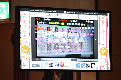 今回のイベントの模様はニコニコ生放送でも配信。難解なミッションに頭を悩ませたメンバーは、視聴者にアドバイスを要求し、ゲリラライブや特製名刺の配布など、さまざまな案が飛び出した。でんぱ組の必死のアピールに、動画内では「auに乗り換えます!」など、さっそくPR効果てきめんのコメントが並んだ。
