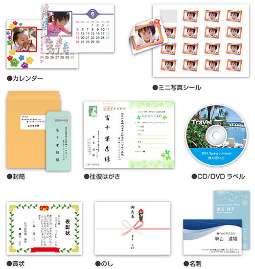 ハガキだけではなくカレンダーやCD/DVDラベルなども作成できる
