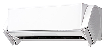 本体センターから出る「冷暖気流」と、「デュアルブラスター」から出る「室温気流」の「温度と速さ」が違うハイブリッド気流の働きによって、室内を快適にする。冷房時は、冷風を直接身体に当てずに緩やかな空気の流れで涼感が得られ、暖房時は温風の上昇を押えて足元を温める。新設計の室内機と圧縮機の効率化によって、7.1kW(主に23畳)クラスで省エネNo.1と高出力暖房を両立した。