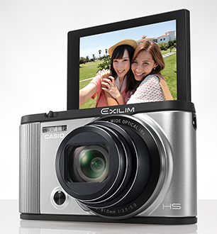 また、「EXILIMエンジンHS Ver.3」で複雑な画像処理をしながら次々とシャッターが押せるほか、上向きで約180度開くチルト液晶や、縦持ちにも便利なフロントシャッター、カメラから離れたところから手を振ってシャッターを切ることができる「モーションシャッター」、肌の色などを調整できる「メイクアップモード」などを搭載。これらの充実した機能を使って「自分撮り」や「みんな撮り」を楽しみながら、SNSなどで簡単に共有できる。