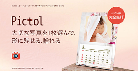 写真とギフトを贈れるアプリ「Pictol」、簡単にカレンダーやメッセージカードを作成