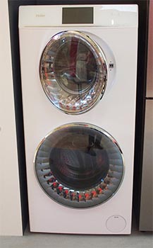 洗濯乾燥機ドラムを2個備え、洗濯機を2度回すところを1回で済ませようとする、コロンブスの卵的な製品。大量の洗濯物がある場合は、2つのドラムをフル回転させれば、それだけ洗濯にかかる時間が短くなる。また、ウールとコットンのように素材が違う服を同時に、あるいは色落ちしやすい服と白いシャツを同時に洗うことができ複数回洗濯機を回さなくて済む、というわけだ。さらに、スマートフォンに接続でき、多くの洗濯プログラムを駆使しながら簡単に操作できるのも特徴だ。
