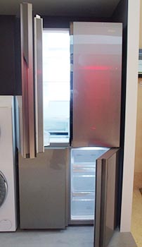 そのほか、冷蔵庫にも「画期的」製品を投入する。「T-DOOR」シリーズだ。Fierling CEOが「世界初」と胸を張る、冷蔵エリア、冷凍エリアに加え、マイナス20℃からプラス5℃の間で自由に温度設定ができる「設定温度可変エリア」を備えるのが特徴。必要に応じて冷凍エリア・冷蔵エリアを切り替えることで、食料の収納効率が上がるほか、におい移りが気になる食品を分けて入れることもできるメリットがある。