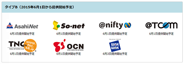 6月1日から新しい料金プラン「タイプB」を提供。プロバイダは「AsahiNet」「So-net」「@nifty」などから選べる