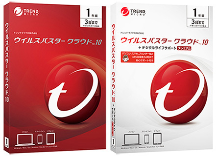 対応OSは、Windows 10/8/8.1/7/Vista、Mac OS Xバージョン10.10「Yosemite」/10.9「Mavericks」。ダウンロード版のラインアップとトレンドマイクロ・オンラインショップでの税込み価格は、1年版が5380円、2年版が9680円、3年版が1万2780円、「ウイルスバスター クラウド 10 + デジタルライフサポート プレミアム」の1年版が7980円、2年版が1万3800円、3年版が1万8580円。