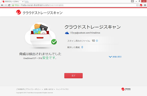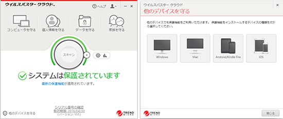 Windows向けは、Windows 10に対応するほか、マイクロソフトのクラウドストレージ「OneDrive」に保存しているデータをスキャンし、ウイルスを検出する機能を新たに搭載。ウイルスのスキャンには、トレンドマイクロのクラウド上にあるエンジンを用いるのでPCに負荷がかからない。