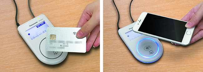 NFCは「キャッシュレス・オール・イン・ワンデバイス」と呼ばれる、各種電子マネー、クレジットカード(磁気・IC)などを一つの機械で対応できる、オールインワン型の端末で読み取る。