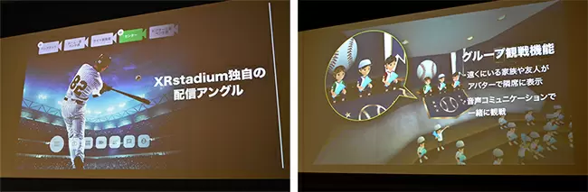第一弾として提供するコンテンツは「パーソナル パ・リーグTV VR」。複数のカメラアングルで撮り下ろした映像をプラットフォームを通して、ユーザーが自身で視点を切り替えて観戦できる。試合の速報や選手情報、シーズンの成績などを閲覧しながら楽しむことも可能だ。また、遠く離れた家族や友人をアバターで隣席に表示し、音声通話でコミュニケーションをとりながら、試合を観戦する機能も備えている。