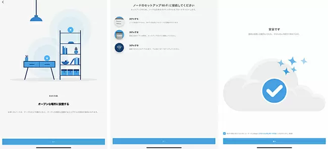 Velopは、シリーズ共通仕様として、セットアップをスマートフォン(スマホ)/タブレット端末向けの「Linksys」アプリから行い、ウィザードに沿って入力・設定するだけで簡単に完了する。その後、各機器で、VelopのSSIDを選び、自分で決めた新たなパスワードを入力するとつながる。