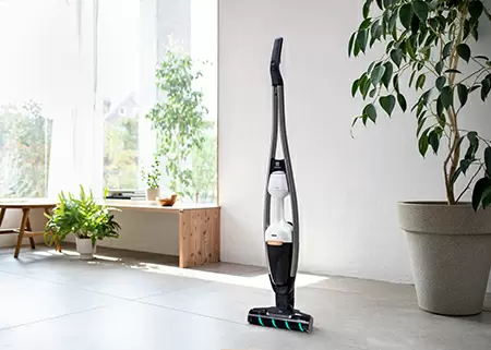 新製品は従来の同社のスティック掃除機の設計を大きく変更。掃除機とハンドクリーナーの2wayで使用できるコンセプトはそのままに、曲線的なアルミフレームを採用することで、インテリアに調和するスタイリッシュなデザインに仕上げた。