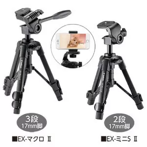 EX-マクロ IIとEX-ミニS IIともに、スマートフォン(スマホ)ホルダーが付属しているので、カメラだけでなくスマホでも撮影が楽しめる。ハクバのオンラインショップでの税込み価格は、EX-マクロ IIが3990円、EX-ミニS IIが2990円となっている。