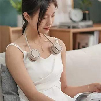 首元や顔回りに直接風を送りこむため、しっかり涼しさを感じられる。風量は3段階の調整ができ、好みに合わせて自由に切り替えることが可能。髪の毛を巻き込みにくい設計となっており、髪の長い人でも安心して使用できる。