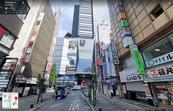筆者が東京に出てきて馴染み深いのが渋谷の街。ここ10年で再開発が一気に進み、上京した頃とは大きく姿を変えているものの、意外と過去の姿は忘れている。そこで、最初に見てみたのがスクランブル交差点周辺だ。スマホアプリの場合、まずは見たい場所を検索して表示し、地図の左下に表示されたストリートビューのサムネイルをタップすると、ストリートビューが表示される。ここで表示されるストリートビューの写真は最近のものだ。