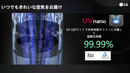 このほかUV LEDを利用した「UVnano機能」では、空気清浄機内のファンに付着した菌をキレイにするという。