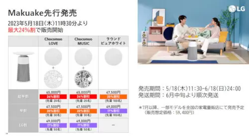 高性能な空気清浄機ほど本体が大きくなりがちで、部屋の中で存在感が増し、悪目立ちしてしまう。LGエレクトロニクス・ジャパンが7月から発売するマルチ機能空気清浄機「LG PuriCare AeroFurniture(エルジー・プリケア・エアロファニチャー)」は、部屋のインテリアに溶け込むスマートなデザインが魅力だ。価格はオープンで実売想定価格は5万9400円前後。クラウドファンディング「Makuake」では5月18日から先行販売している。