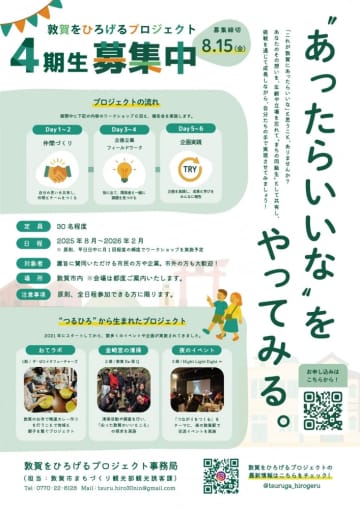あったらいいなをやってみよう!!「敦賀をひろげるプロジェクト第4期参加者募集中! [福井県敦賀市]