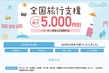 日本旅行は、観光需要喚起策「全国旅行支援」の一部自治体の販売を、現在も継続している。大半の道府県では...