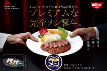 大阪マリオット都ホテルと日清食品は、ホテル開業10周年を記念して、共同開発したプレミアムな「完全メシ...