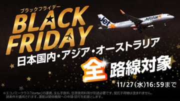ジェットスターグループは、国内線と国際線を対象とした「ブラックフライデー」を、11月22日正午から2...