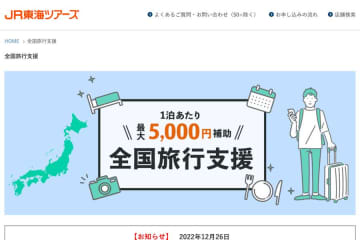 JR東海ツアーズは、観光需要喚起策「全国旅行支援」の一部自治体の販売を、5月10日に再開した。 対象...