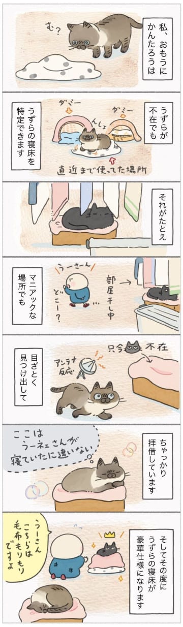 ダミーには騙されない!同居猫が寝ていた場所を特定できる能力にあっぱれ【連載】ねこ連れ草 278話め