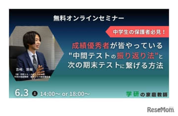 中学生と保護者向け「期末テスト得点アップセミナー」6/3