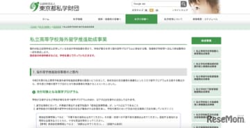 東京都私学財団は、都内の私立高等学校に在学している生徒の海外留学プログラム参加費用の一部を助成する「...