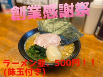 仙台広瀬通りの『家系ラーメン 傳助』がオープン3周年で創業感謝祭!2022年7月17日限定で、ラーメン並盛が500円に。