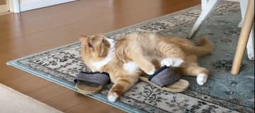 スリッパに酔ってる?スリスリが止まらない猫ちゃん!