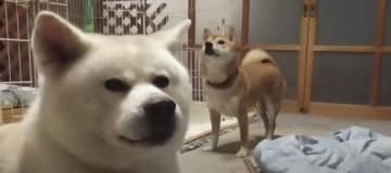 こちらは秋田犬のゆうきくんと、親戚と一緒に帰省している柴犬のきなこちゃん。きなこちゃんは部屋の外に出...