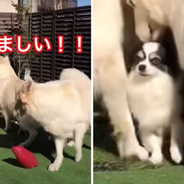 『やかましい!』チワワに叱られる3匹の大型犬が124万回再生を記録 「しょんぼりして可愛い」「凹凸チーム最高」大絶賛の声