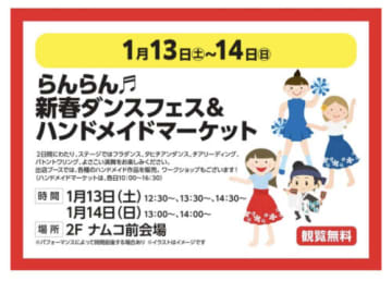 【富谷市】イオンモール富谷2階で、『らんらん新春ダンスフェス&ハンドメイドマーケット』を、2024年1月13-14日(土日)に開催するみたい!