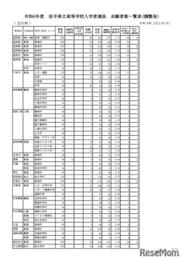 【高校受験2024】岩手県公立高、一般選抜の志願状況(確定)盛岡第一1.10倍