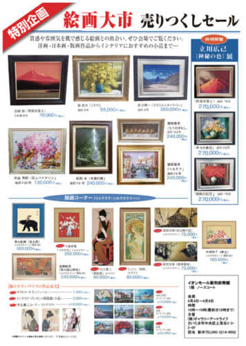 【利府町】イオンモール新利府南館1階で、『特別企画 絵画大市 売りつくしセール』を、2024年4月4日(木)-9日(火)に開催するみたい!