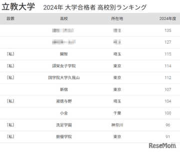 大学通信は、2024年度入試における大学合格者の高校別ランキングを特集している。「立教大学」合格者の...